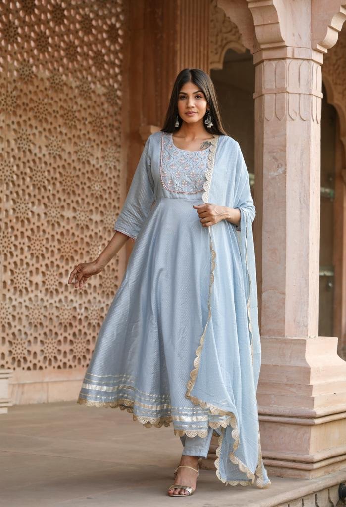 Pastel Grey Cotton Kurta Set – 3 pc