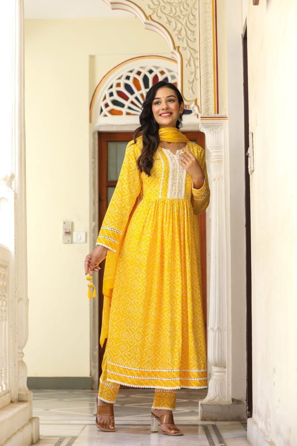 SALE: Gold Yellow Bandhej Romance Suit (3 piece)