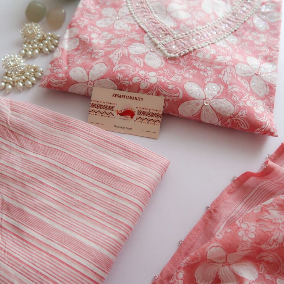 Peach Blossom Cotton Kurta Set – 3 pc – M