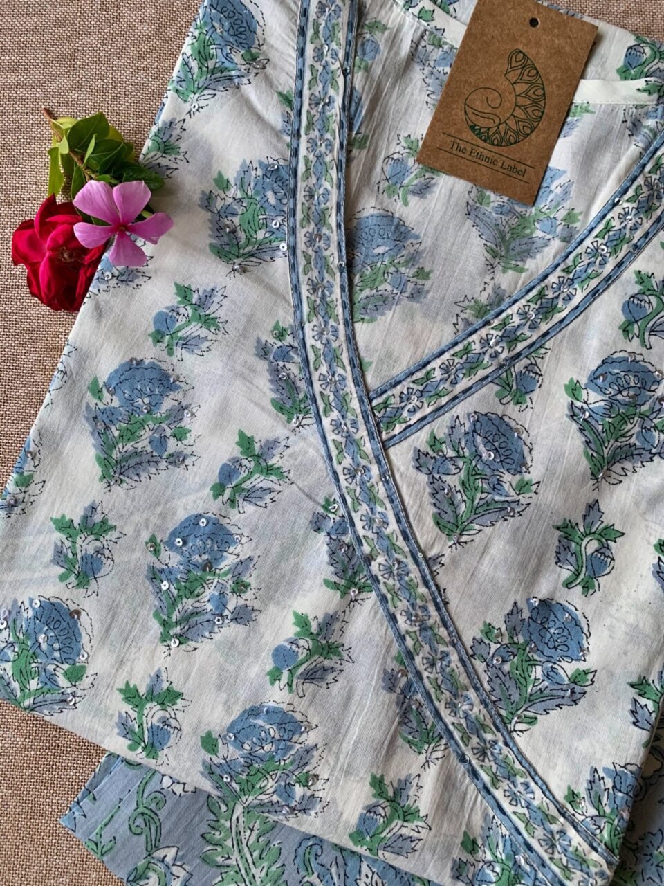 White Blue “Aasman” Angrakha Cotton Kurta Set – 2 pc