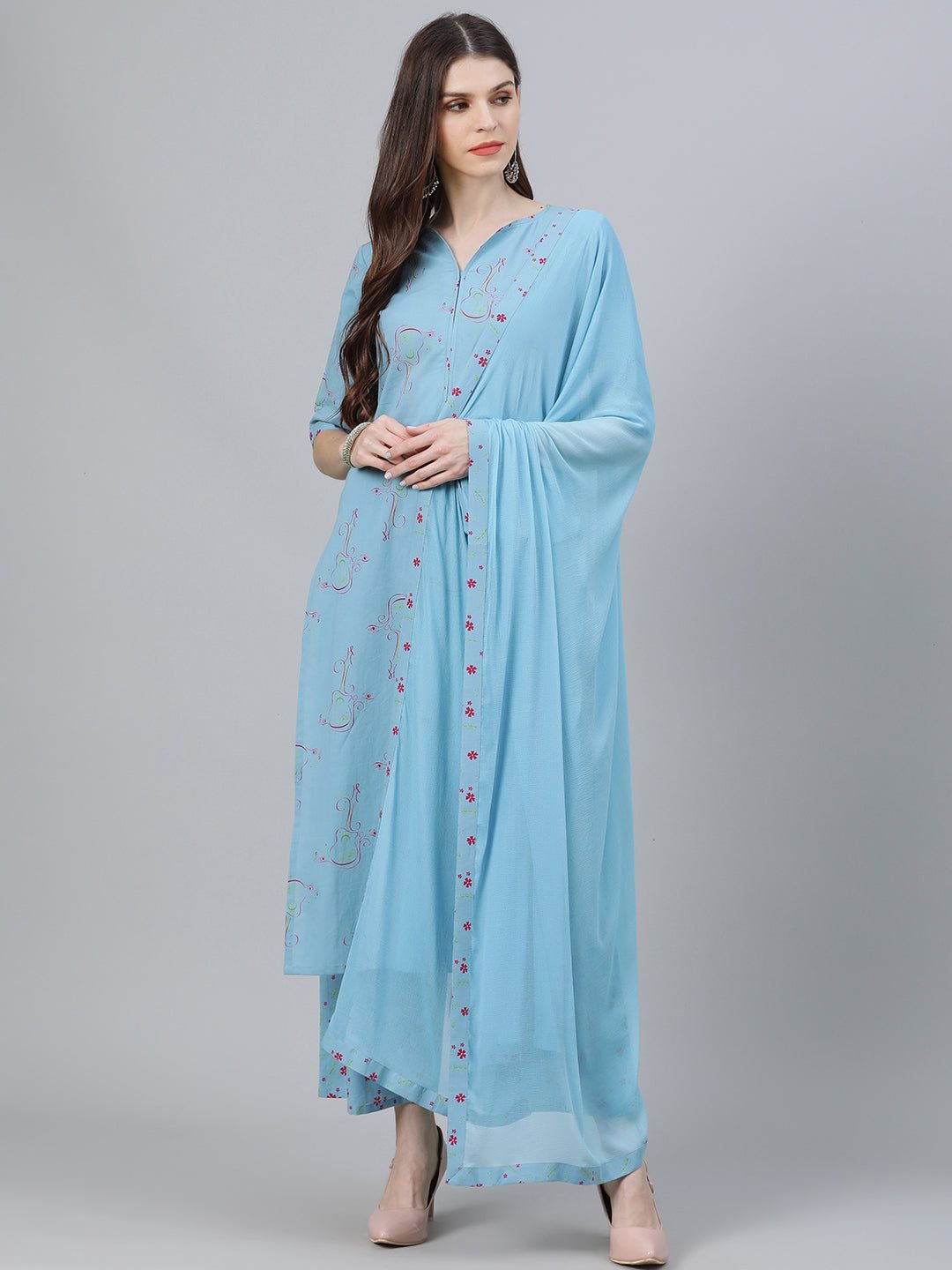 Natural-dyed colors might bleed during the first few washes or rub against the skin & other light-colored garments. In the artful process of hand block-printing, embroidery work and stitching, variations are likely to come into existence. These irregularities are the hallmark of all handmade products and give each style a unique identity.