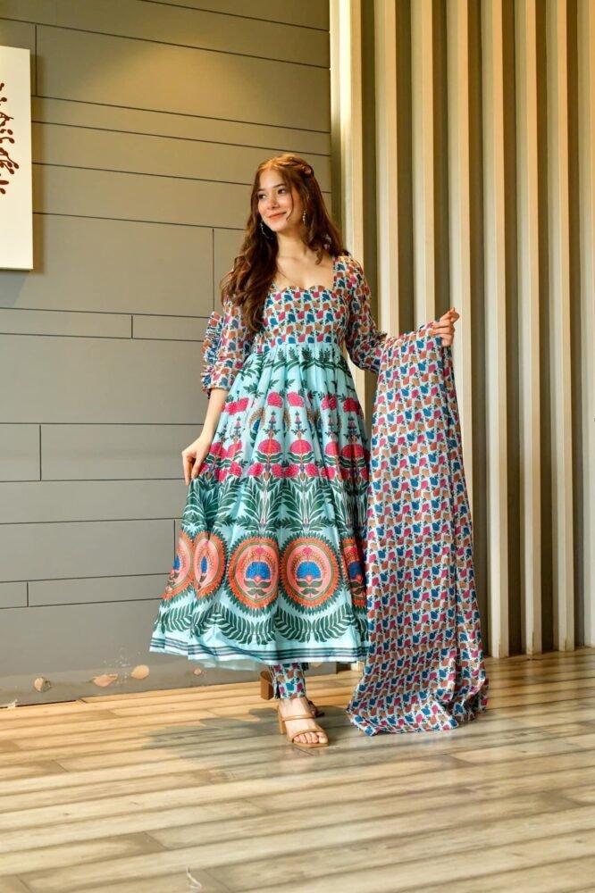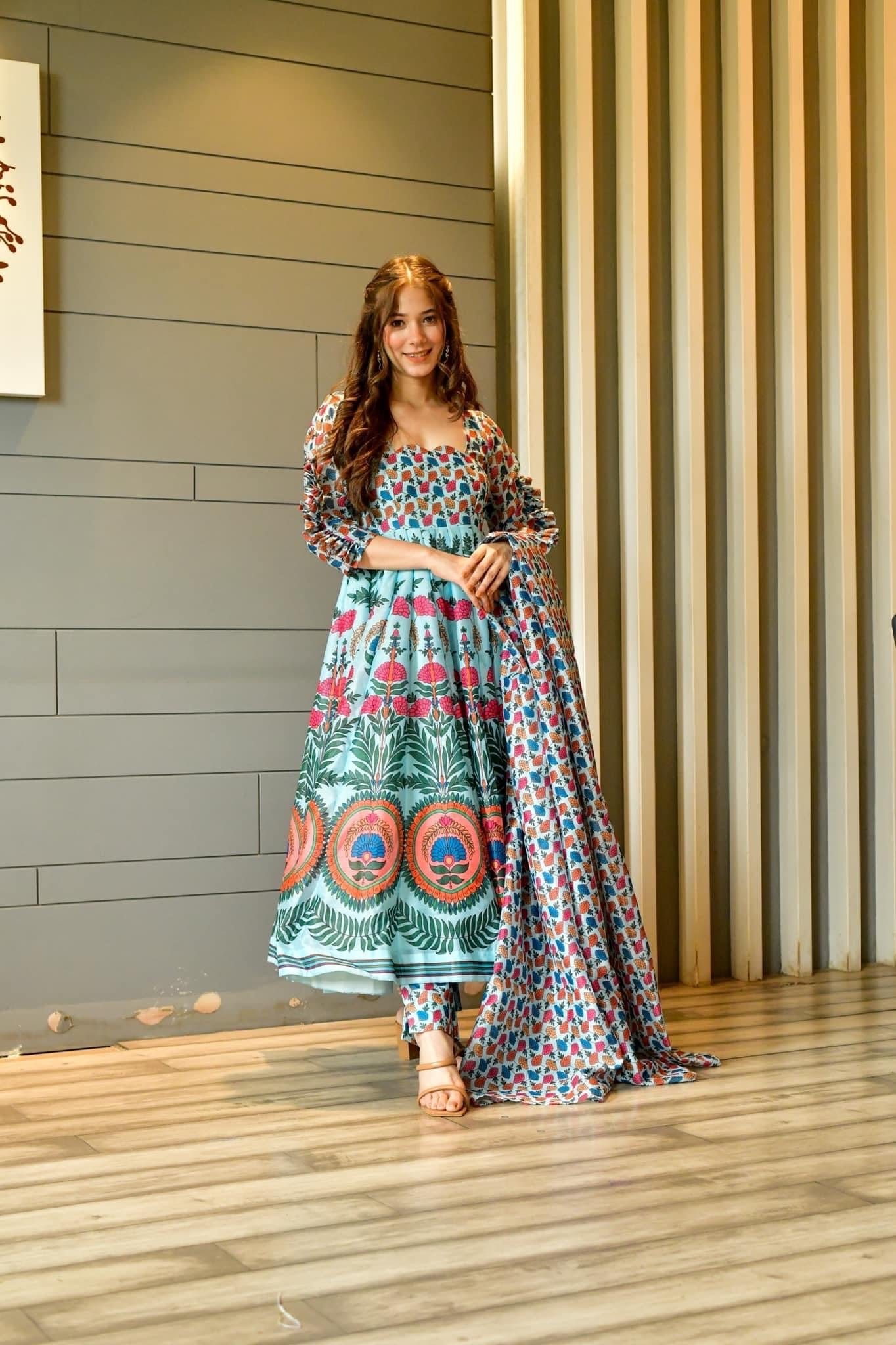 Light, bright, and full of life, this suit set will make a delightful addition to your wardrobe. Tailored with flowy silhouettes with classic golden prints, it is spruced up with a trendy fit.