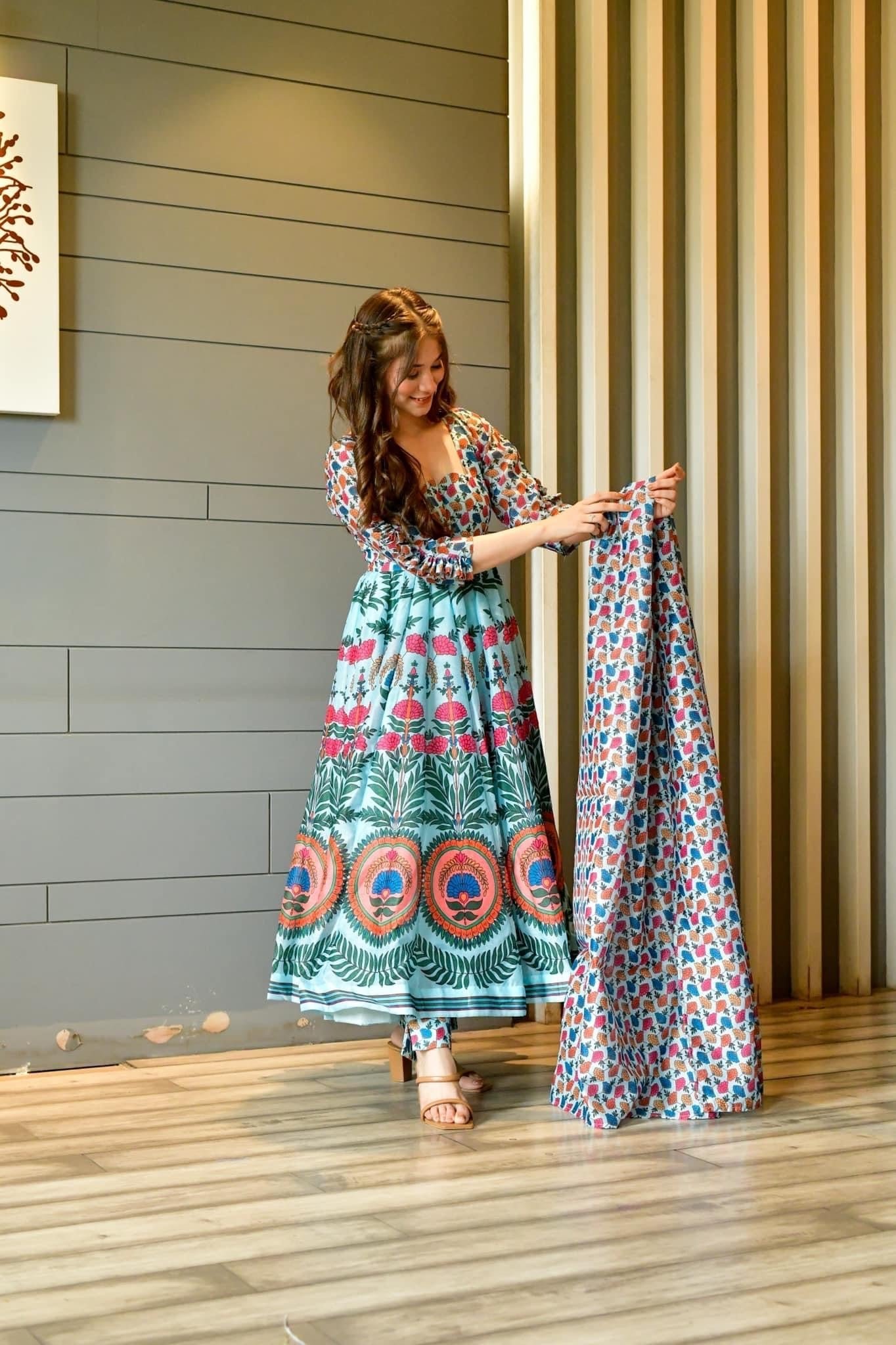 Natural-dyed colors might bleed during the first few washes or rub against the skin & other light-colored garments. In the artful process of hand block-printing, embroidery work and stitching, variations are likely to come into existence. These irregularities are the hallmark of all handmade products and give each style a unique identity.