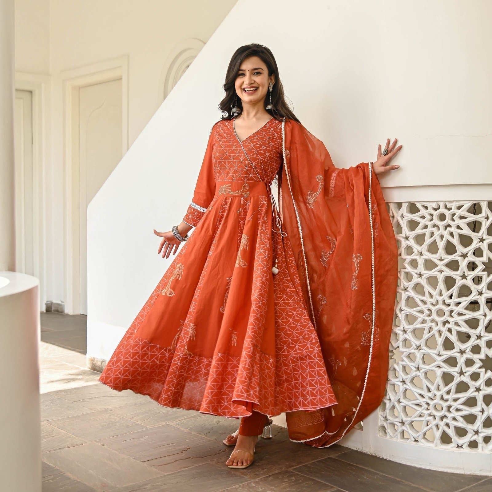 Natural-dyed colors might bleed during the first few washes or rub against the skin & other light-colored garments. In the artful process of hand block-printing, embroidery work and stitching, variations are likely to come into existence. These irregularities are the hallmark of all handmade products and give each style a unique identity.