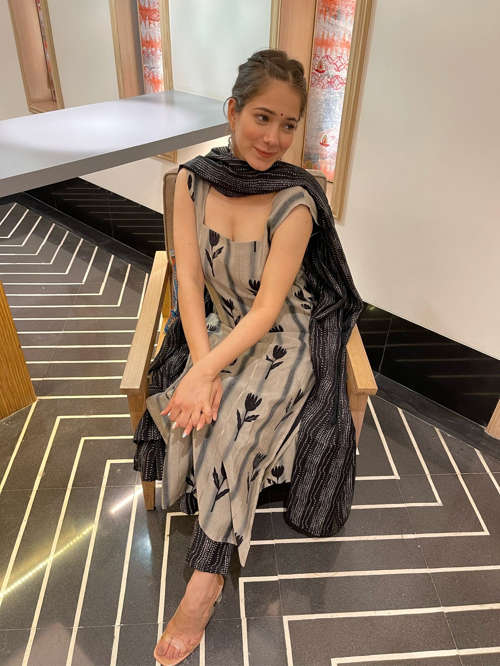 pamper yourself on a bright summer day with this absolutely gorgeous suit set made in muslin cloth.!