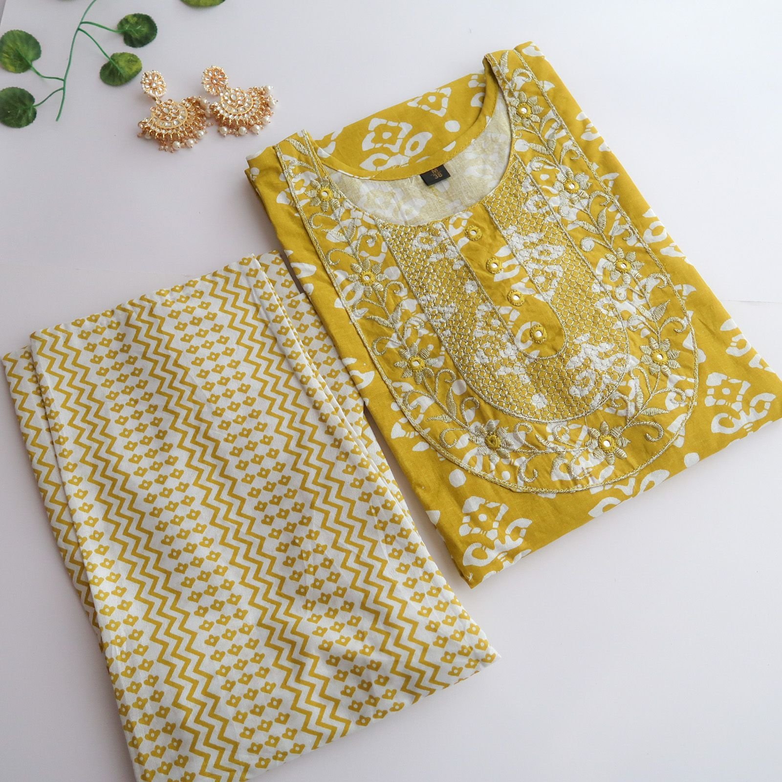cotton kurta with cotton pants, Half drawstring and half elastic closure.