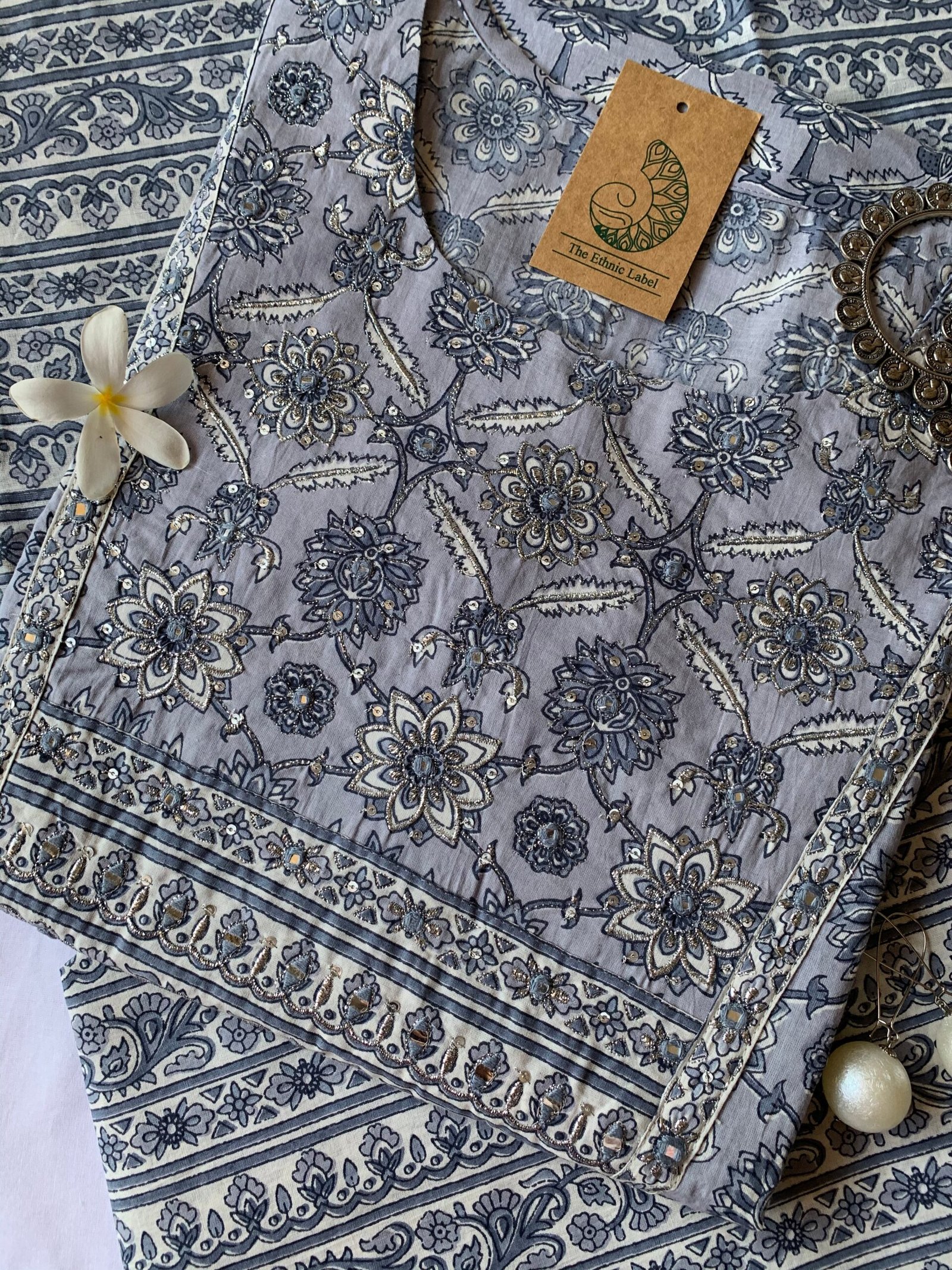 Be the first to review “Pastel Grey Cotton Kurta Set – 3 pc”