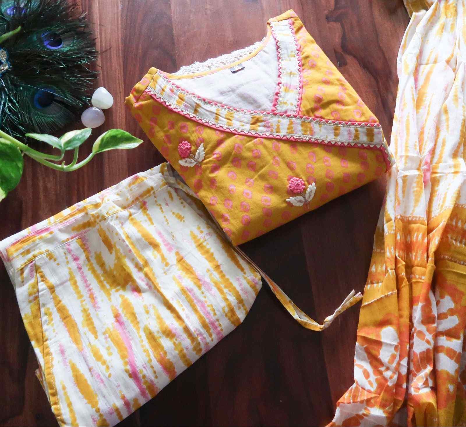 Anarkali embellished with bandhani, heavy Kurta with Beautiful motifs work on yoke.