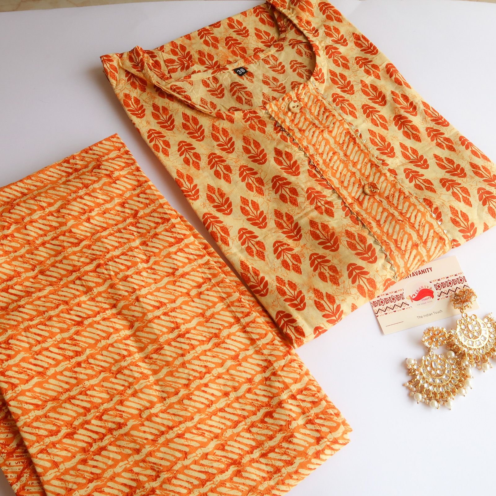 cotton kurta with cotton pants, Half drawstring and half elastic closure.